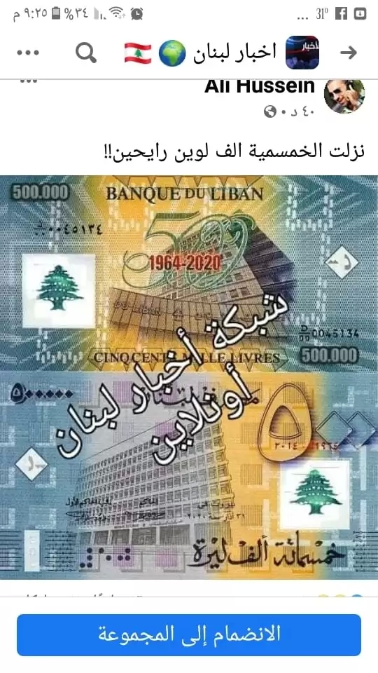 تناقل نشطاء و صفحات على فيسبوك صورة لعملة لبنانية قيل انها جديدة وهي من فئة ال 500 الف ليرة لبنانية ليكشف موقع بنت جبيل انه و في سابق قد انتشرت الصورة ذاتها لفئة ال 50,000 اليرة بنفس التصميم وقد جرى في التصميم الجديد تغيير الارقام من 50 الى 500 مع عدم تطابق تواريخ الطبع الامر الذي يطرح الشكوك حول صدقية ما يتم نشره على صفحات فيسبوك، مع الاشارة الى ان مصرف لبنان لم يصدر حتى اللحظة اي بيان بهذا الخصوص.