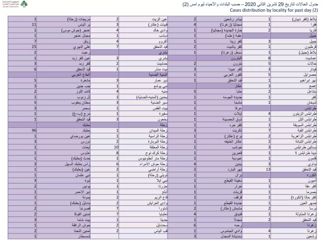 — Ministry of Public Health - Lebanon (@mophleb) November 29, 2020