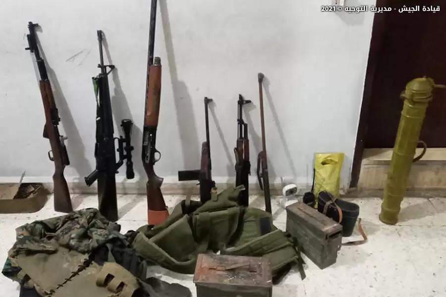 بتاريخ 7 /2 /2021 دهمت قوة من الجيش منازل مطلوبين في منطقة دورس- بعلبك وأوقفت كلاً من (ص.ع) وشقيقه المطلوب (ع.ع) لقيامهما بالإتجار بالمخدرات والأسلحة الحربية والذخائر، وضبطت داخل منزلهما على كمية كبيرة من المخدرات (حشيشة الكيف) معدة للتصدير، كما عثرت في منزل الأخير على أسلحة حربية وذخائر.