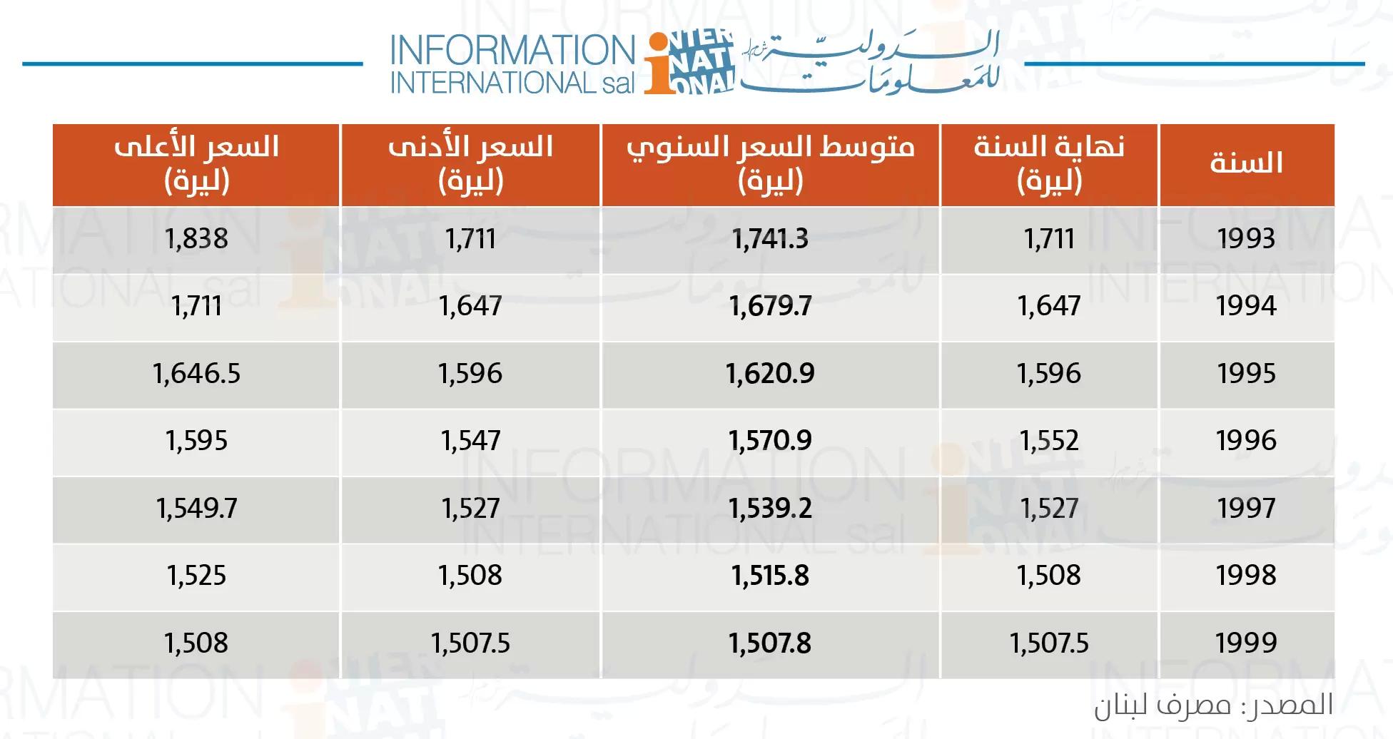 1981--> 4.3 ليرة/ دولار".