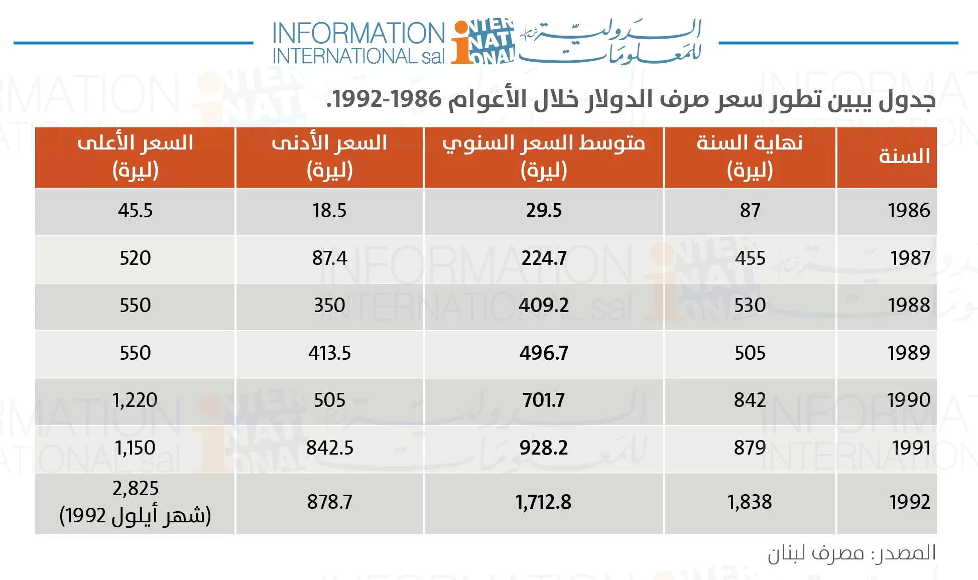 1985 --> 18.1 ليرة/ دولار".
