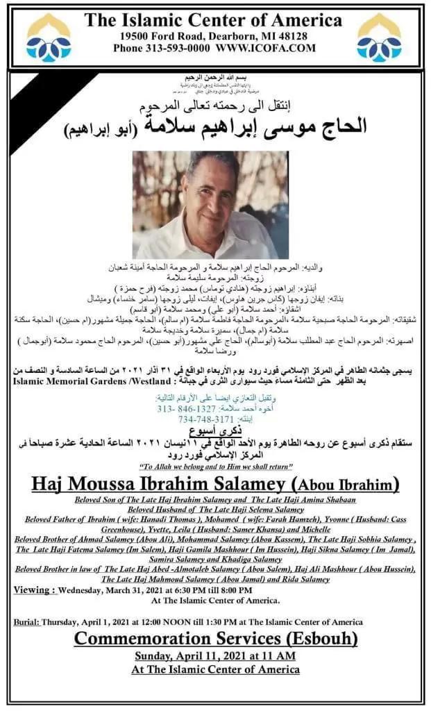 الحاج موسى ابراهيم سلامة (أبو ابراهيم) في ذمة الله