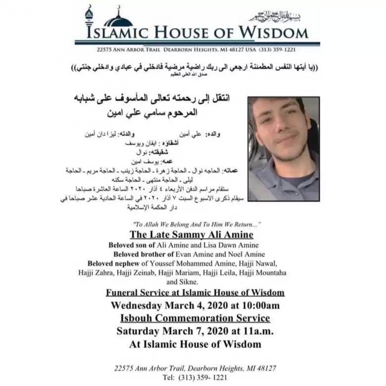نعت الجالية العربية في ديربورن ابنها المرحوم الشاب سامي علي أمين (20 سنة).