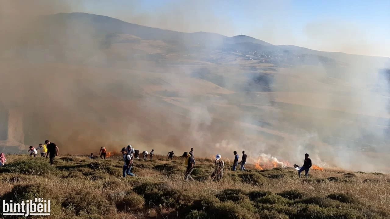اندلع حريق كبير في مارون الراس اثناء تواجد المتظاهرين على الحدود مما ادى الى اصابة البعض بحالات اختناق.