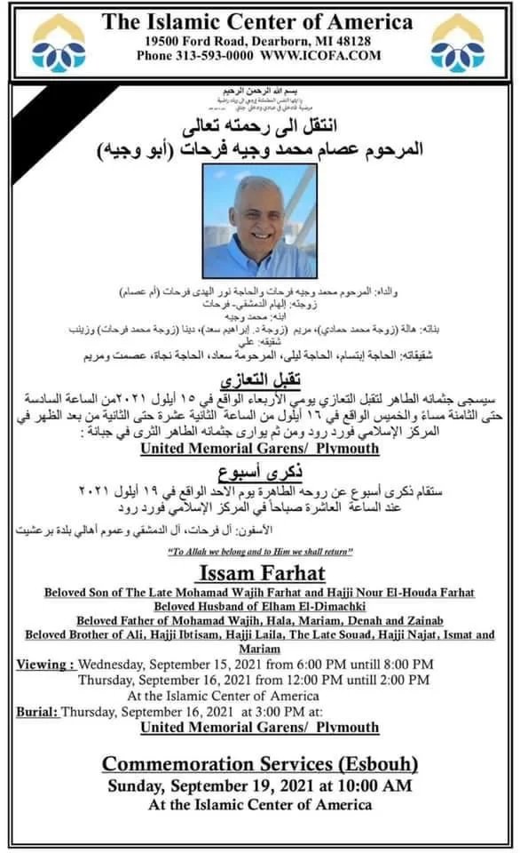 تعازي وذكرى أسبوع المرحوم عصام محمد وجيه فرحات (أبو وجيه)