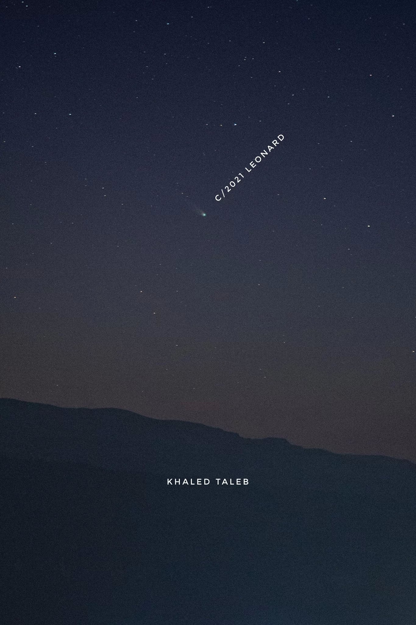 وارفقت الصفحة الصور بتعليق:"المذنب C/2021 Leonard من سماء عكار هذا المساء، وهو المع مذنب في سنة 2021، ورغم انه اقل سطوعاً من زميله C/2020 F3 Neowise الاّ اننا لن نشاهده الاّ مرة واحدة في عمرنا المتواضع قياساً للفترة التي يستغرقها للدوران حول الشمس والتي تتجاوز ال ٣٥ الف سنة ! وقد تكون ايضاً المرة الأخيرة التي يدور بها حول الشمس قبل أن تُفتته وتنثر غباره في هذا الكون الفسيح ".