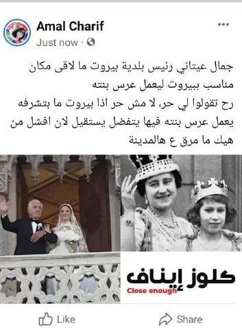 كما علق حساب آخر بالقول: "رئيس بلدية بيروت جمال عيتاني يحيّي أهالي بيروت وبقلن انو قلبو معن وعم يفكر فيهن هوي وعم يحتفل بعرس بنتو الملكي خاصة انو ما في ماي من أيام".