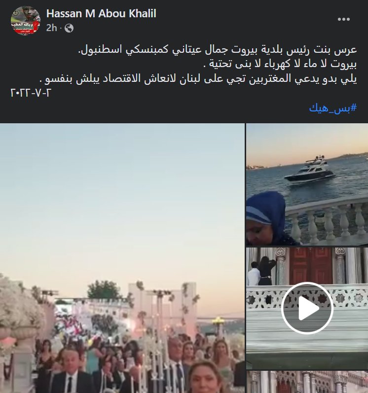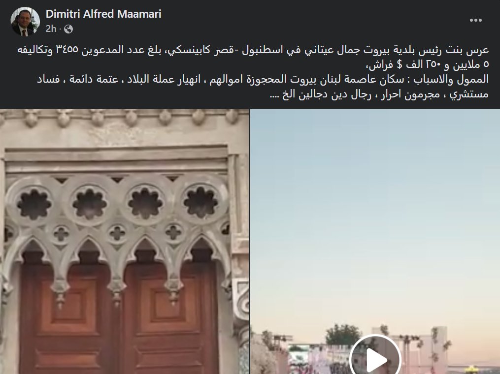 كما علقت جمعية المودعين اللبنانيين ببالقول: "الملك جمال عيتاني محتفلاً بعرس ابنته في فندق كمبنسكي اسطنبول بينما اهالي بيروت بلا ماء ولا كهرباء".