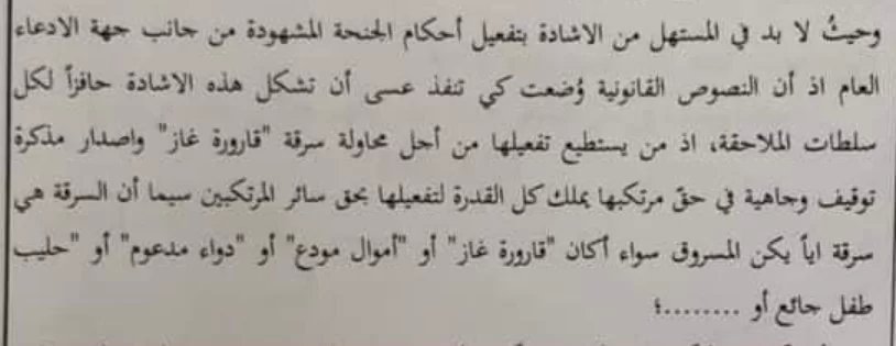 وختم أن القاضي "يشير الى ضرورة ملاحقة جرم سرقة "أموال مودع" او "دواء مدعوم" او "حليب جائع" أسوة بمحاولة سرقة قارورة الغاز".
