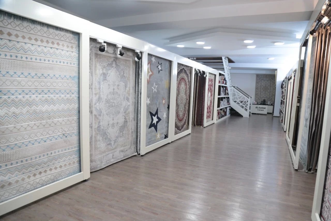 سجاد بكافة أنواعه: تركي وإيراني وبلجيكي. إضافة إلى أرضيات باركيه وغازون وفينيل وبرادي.