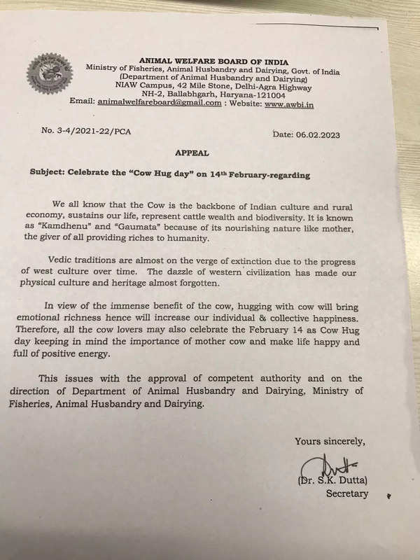 قبل ساعات من الاحتفال بـ عيد الحب 14 فبراير 2023م، طالب مجلس هندي بإعادة تسمية "يوم عيد الحب"، باسم “"يوم حضن البقر"  نظراً لكون الأبقار مقدسة من قبل غالبية السكان الهندوس في الهند، فهي عندهم "رمز لكل من الأرض والإله".