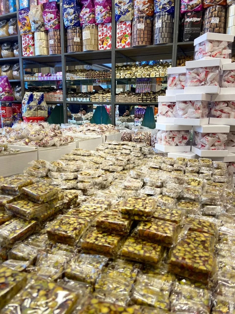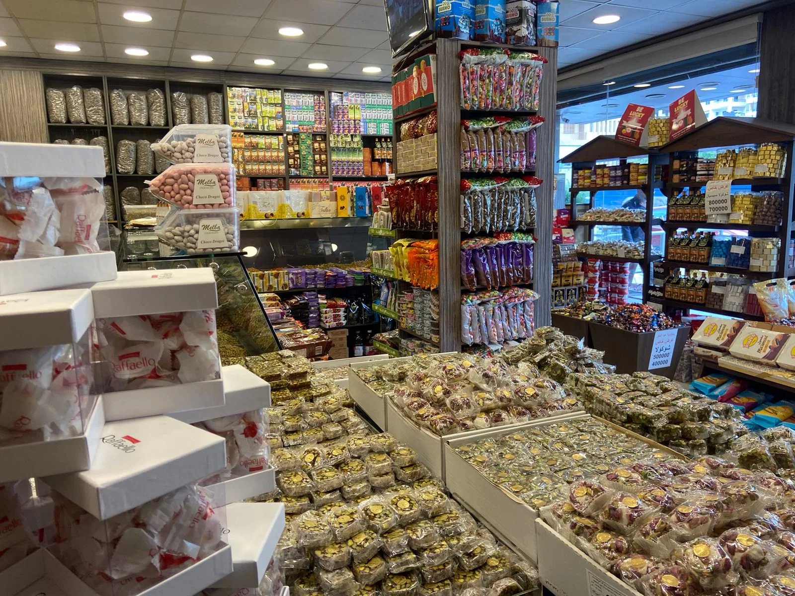 وعلى رفوف هالمحمصة متوفر أجود أنواع البزورات والبن البرازيلي وغيرها.