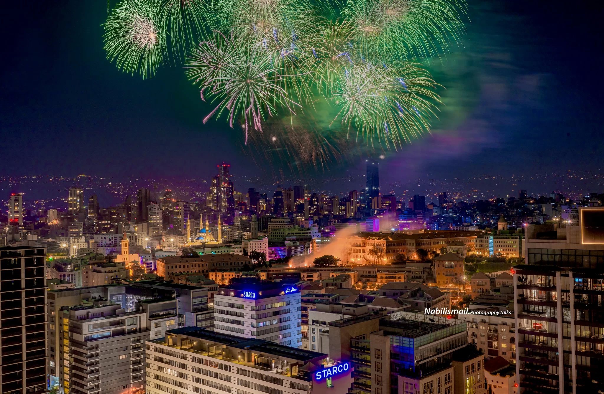 تزينت سماء بيروت ليل أمس بالألوان خلال المفرقعات النارية التي أُطلقت احتفالًا باليوم الوطني السعودي الذي نظمته السفارة السعودية في لبنان.