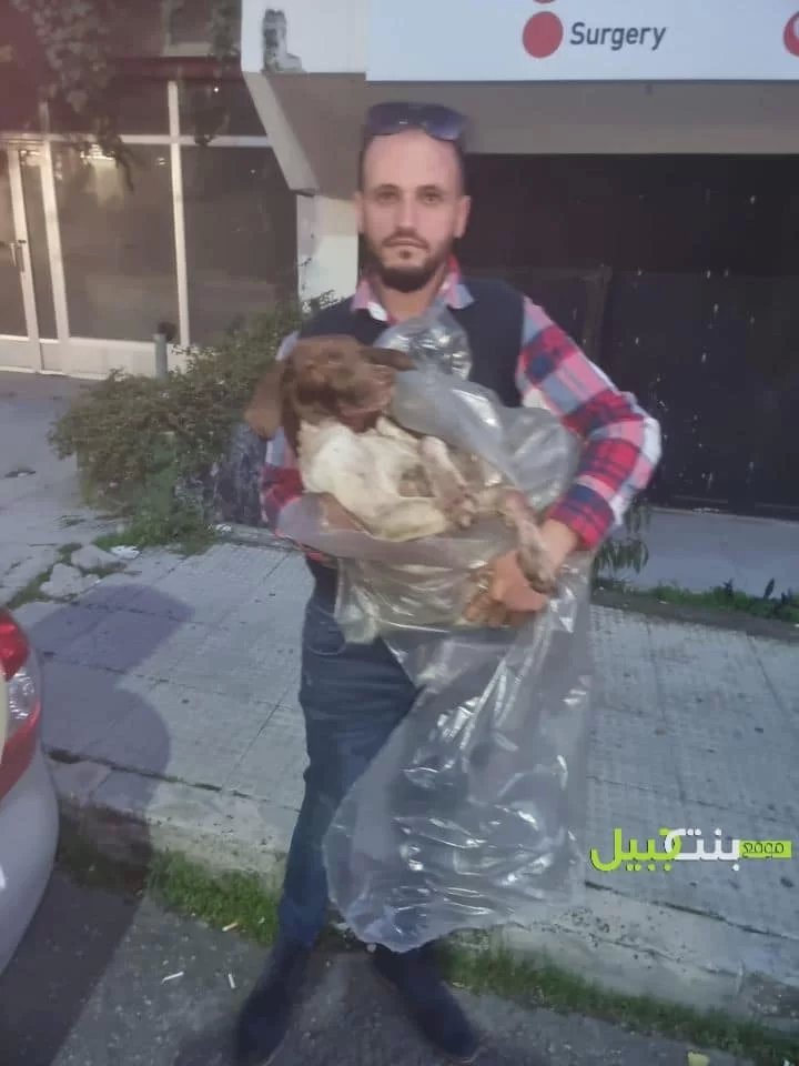 رغم المخاطرة، عمل شاب من العديسة/ جنوب لبنان على نقل الكلب الذي أصيب جراء القصف الإسرائيلي اليوم إلى طبيب بيطري في كفررمان/ النبطية حيث عالجه واستخرج الشظية من جسده.