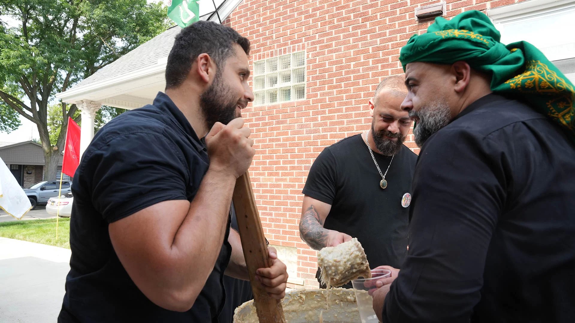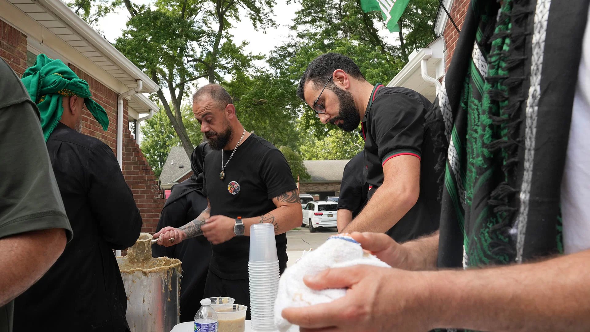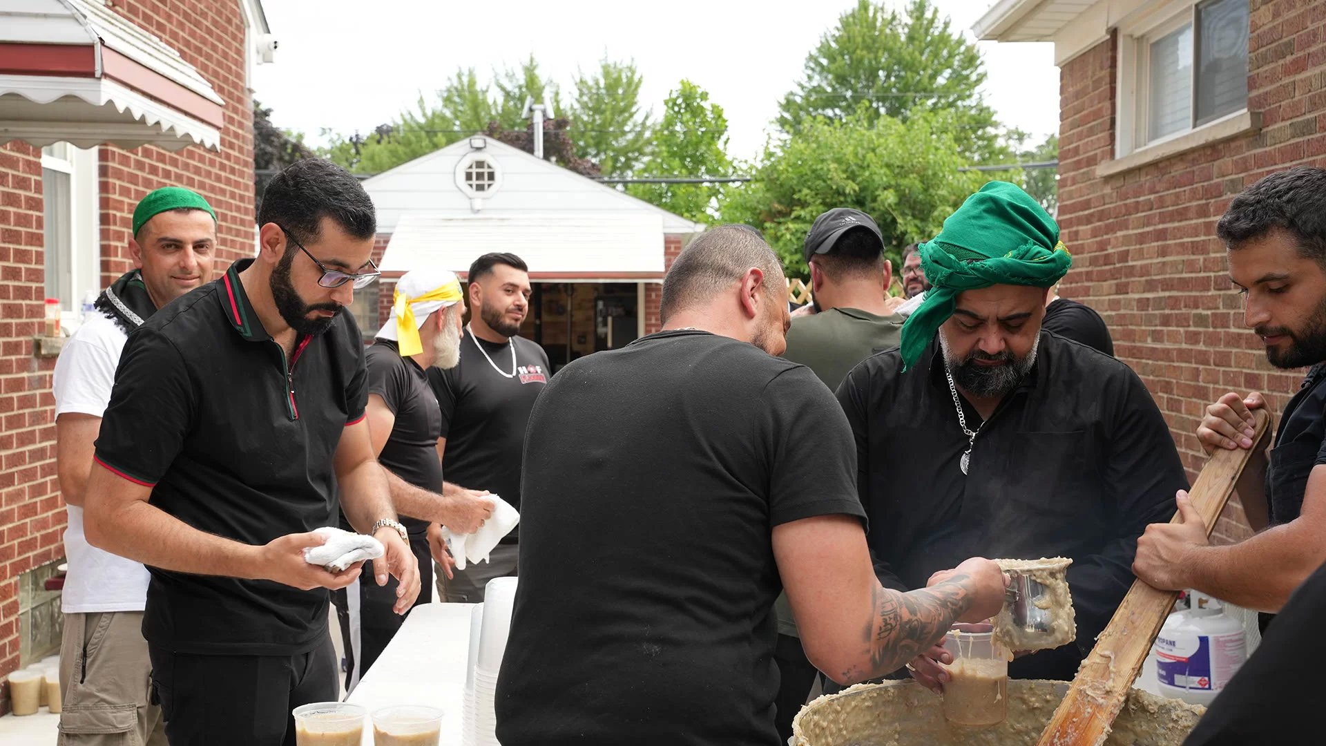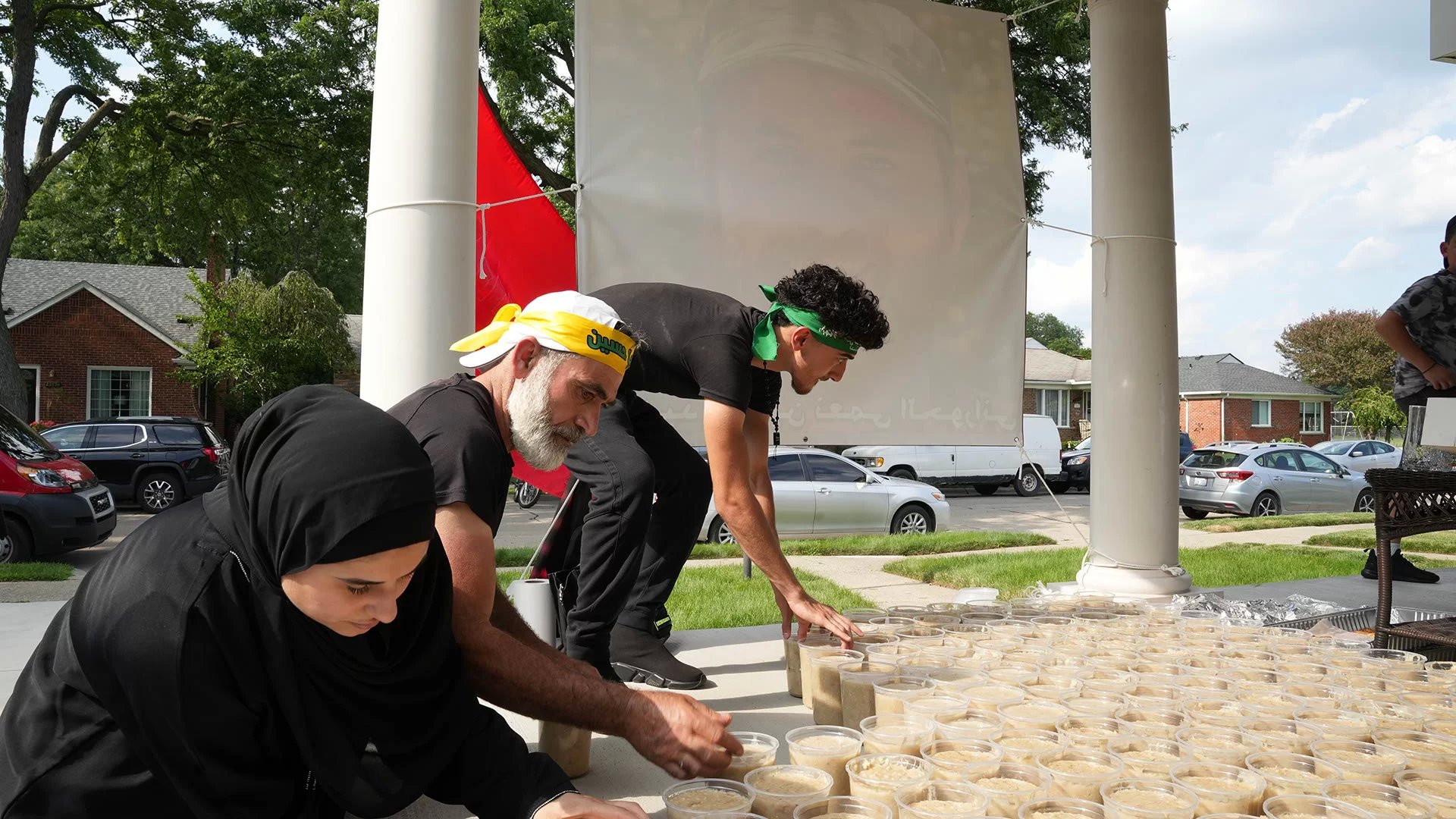 اقامت عائلة الحاج نعمة فرج في ديربورن ميشيغان تجمعاً عاشورائياً طبخواً خلاله طبق الهريسة على حب الامام الحسين (ع) وعن روح قريبهم الشهيد حسين نعمة الحوراني
