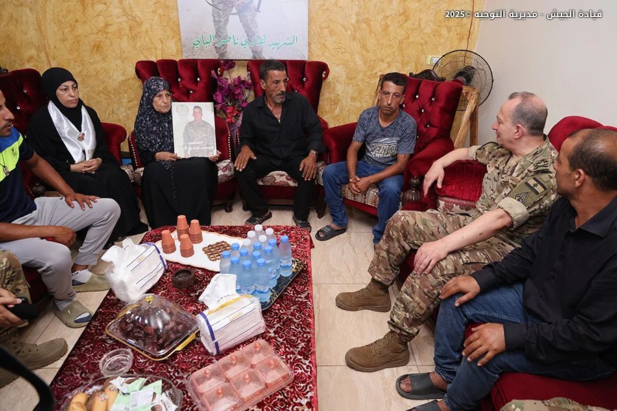 بعدها قدم العماد هيكل التعازي لعائلات العسكريين الشهداء في بلدتَي دبعال - صور والبيسارية - صيدا، ومنطقة الشويفات - العمروسية، مثمنًا تضحياتهم واندفاعهم في أداء الواجب، ولافتًا إلى أن قيادة الجيش ستبقى وفية لهم ولعائلاتهم.