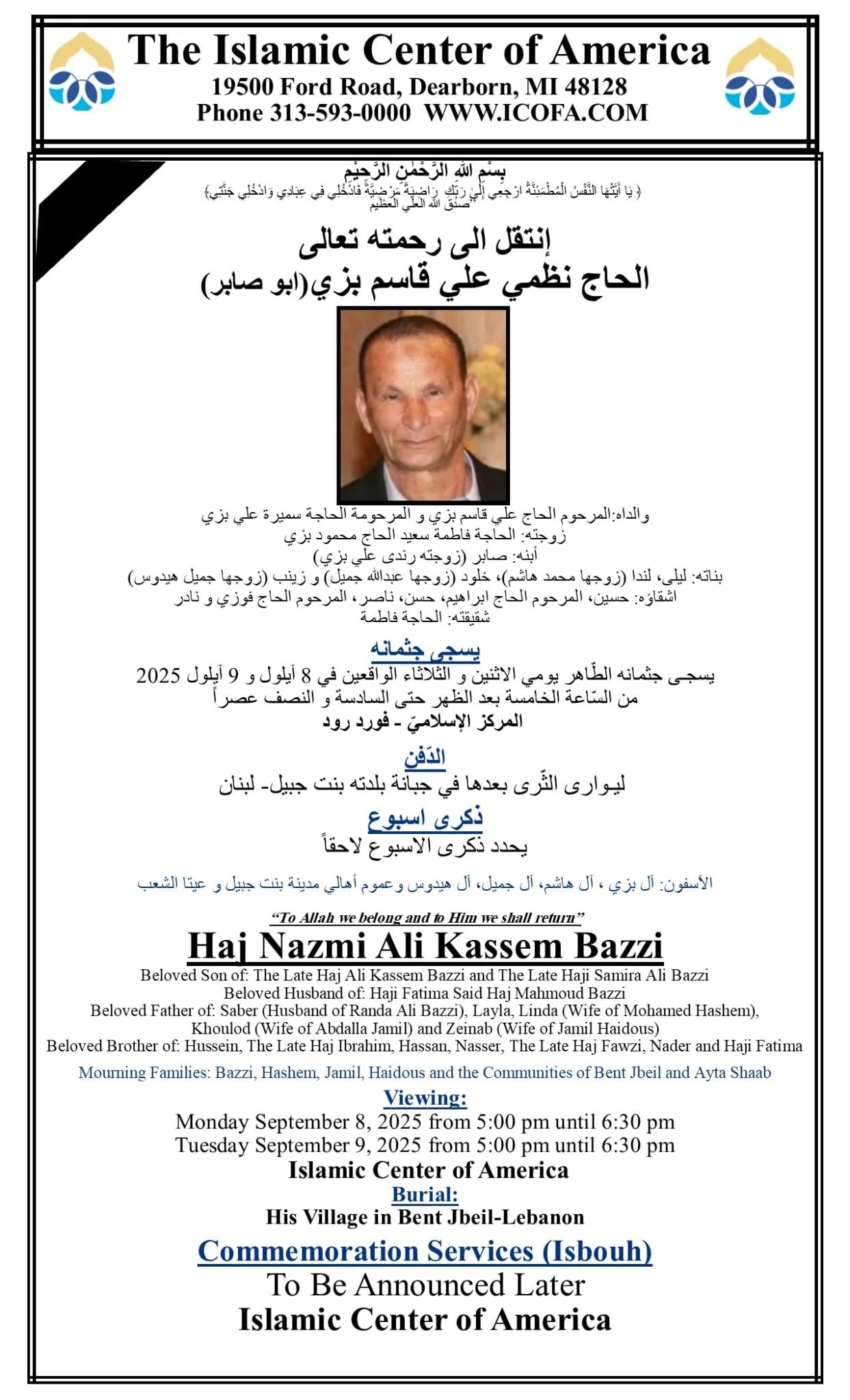 الحاج نظمي علي قاسم بزي (أبو صابر) في ذمة الله