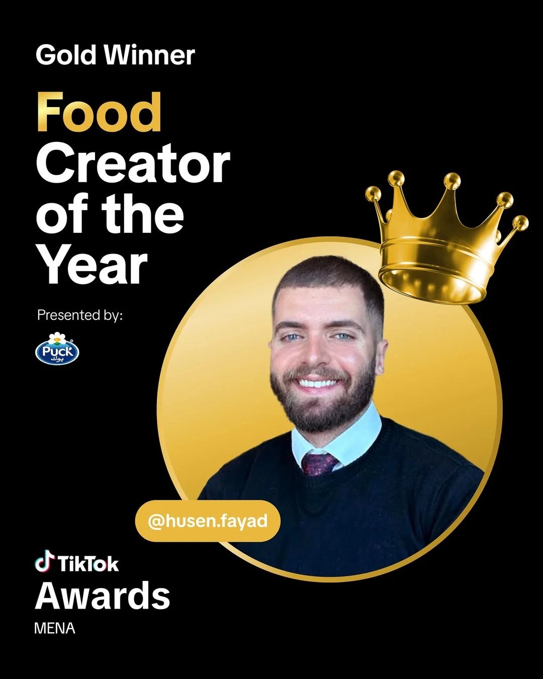 فاز الشيف حسين فياض، ابن الجنوب اللبناني، بجائزة تيك توك لأفضل صانع محتوى طبخ لعام 2025 (الفئة الذهبية) في الشرق الأوسط وشمال أفريقيا