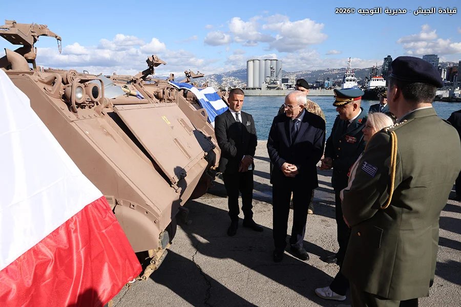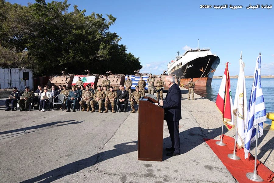 بتاريخ 15 /1 /2026، أقيم في مرفأ بيروت حفل تسلّم هبة مقدمة من قبل السلطات اليونانية للجيش، بحضور وزير الدفاع الوطني اللواء ميشال منسّى، والسفيرة اليونانية في لبنان Despina A. Koukoulopoulou، ونائب رئيس الأركان للتجهيز على رأس وفد من قيادة الجيش، إلى جانب عدد من الضباط. وتضمنت الهبة 13 ناقلة جند من نوع (M113) و10 آليات مع قطع البدل العائدة لها.