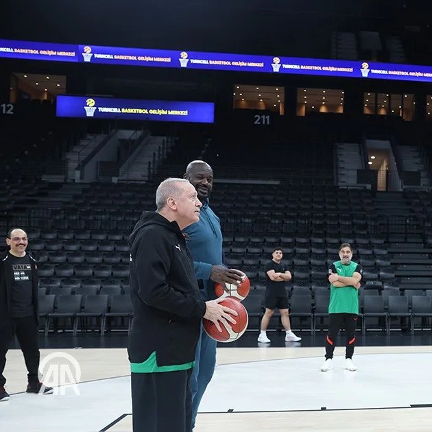 ولعب أردوغان وأونيل كرة السلة في مركز تطوير اللعبة بإسطنبول، ووقعا بعد ذلك على الكرات.